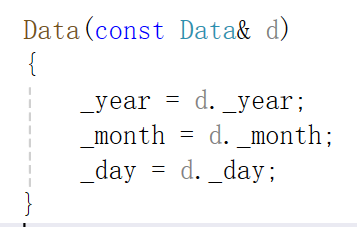值传递引发的递归:如果拷贝构造函数的参数是非引用类型(比如写成 Date(const Date d) ),那么传递实参 d1 给形参 d 时,又会触发拷贝构造函数的调用(因为要复制 d1 到 d ,而复制自定义类型对象会调用其拷贝构造函数)。如此循环,就会导致无穷递归,最终编译报错或运行时栈溢出。