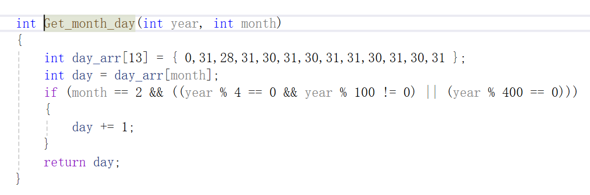 这儿还得知道每个月有多少天,得搞一个获得每月天数的函数