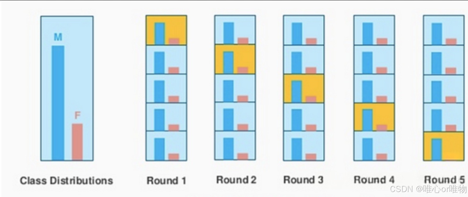 优点:解决了 k 折交叉验证在不均衡数据集上的问题,评估结果更具代表性,更稳定。