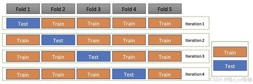 在每次迭代中,数据集的每个样本都有机会成为训练数据,也有机会成为测试数据,这尤其对于数据量较少的情况非常有益。