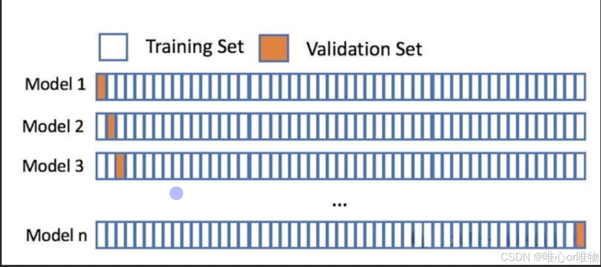 在每次迭代中,选择一个子集作为测试集,其余的 个子集作为训练集。