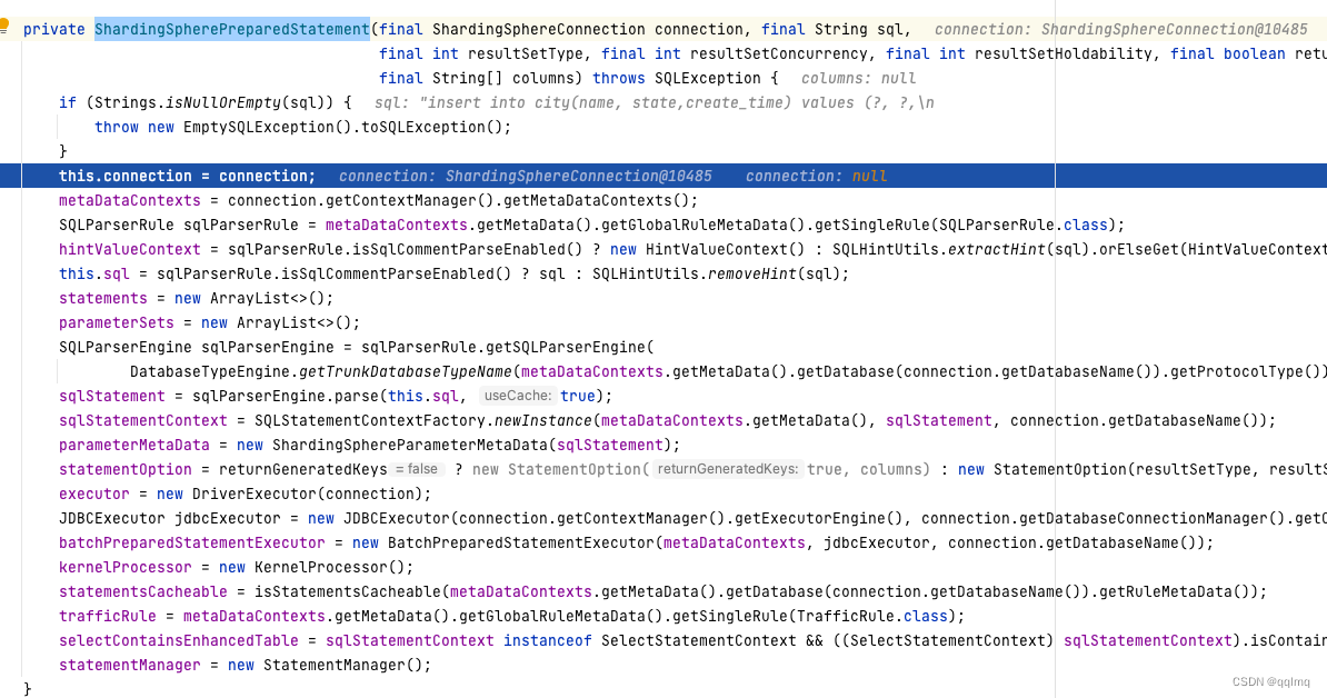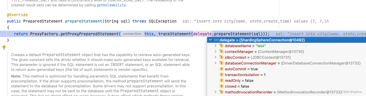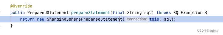 org.apache.shardingsphere.driver.jdbc.core.connection.ShardingSphereConnection#prepareStatement