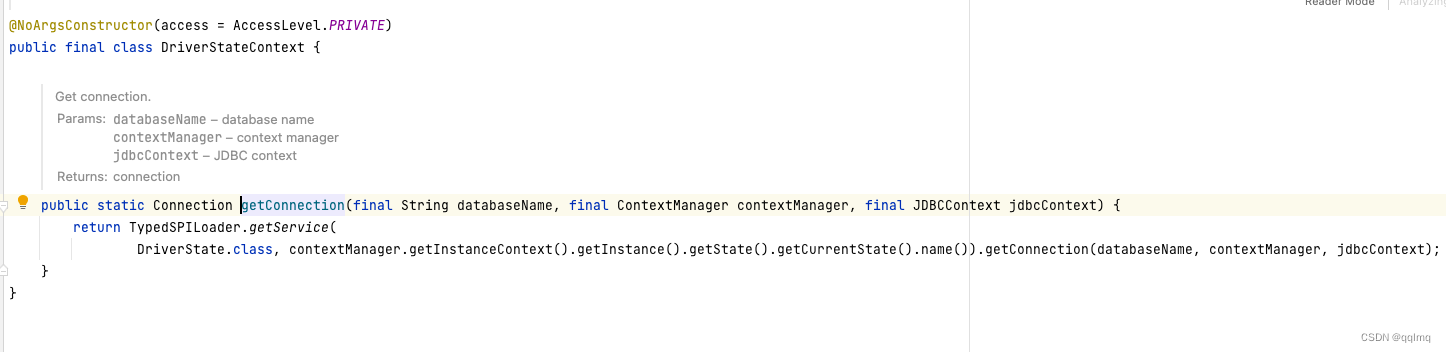 在这个类创建链接 DriverStateContext.getConnection(databaseName, contextManager, jdbcContext);