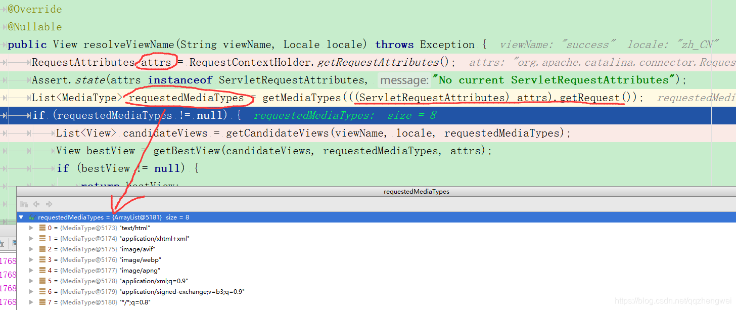 //视图名不为空,通过循环viewResolve,获取到对应的视图解析器,如Thymeleaf的视图解析器为:ThymeleafViewResolver,通过视图解析器获取对应的View对象实例