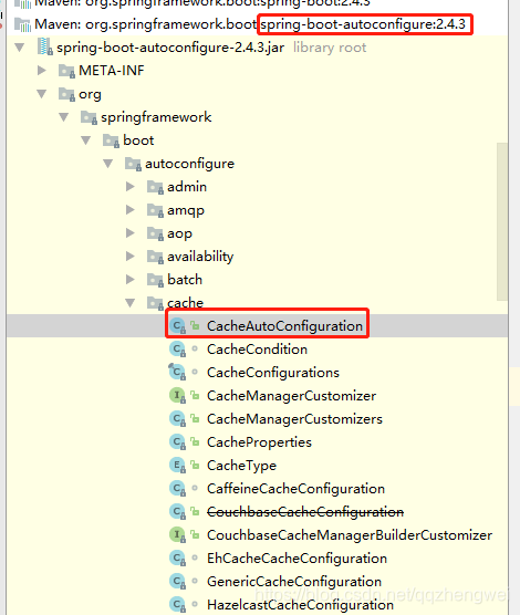 2、由于Cache是通过CacheManager进行管理,在springboot的autoConfig包中,来看看cache的自动配置