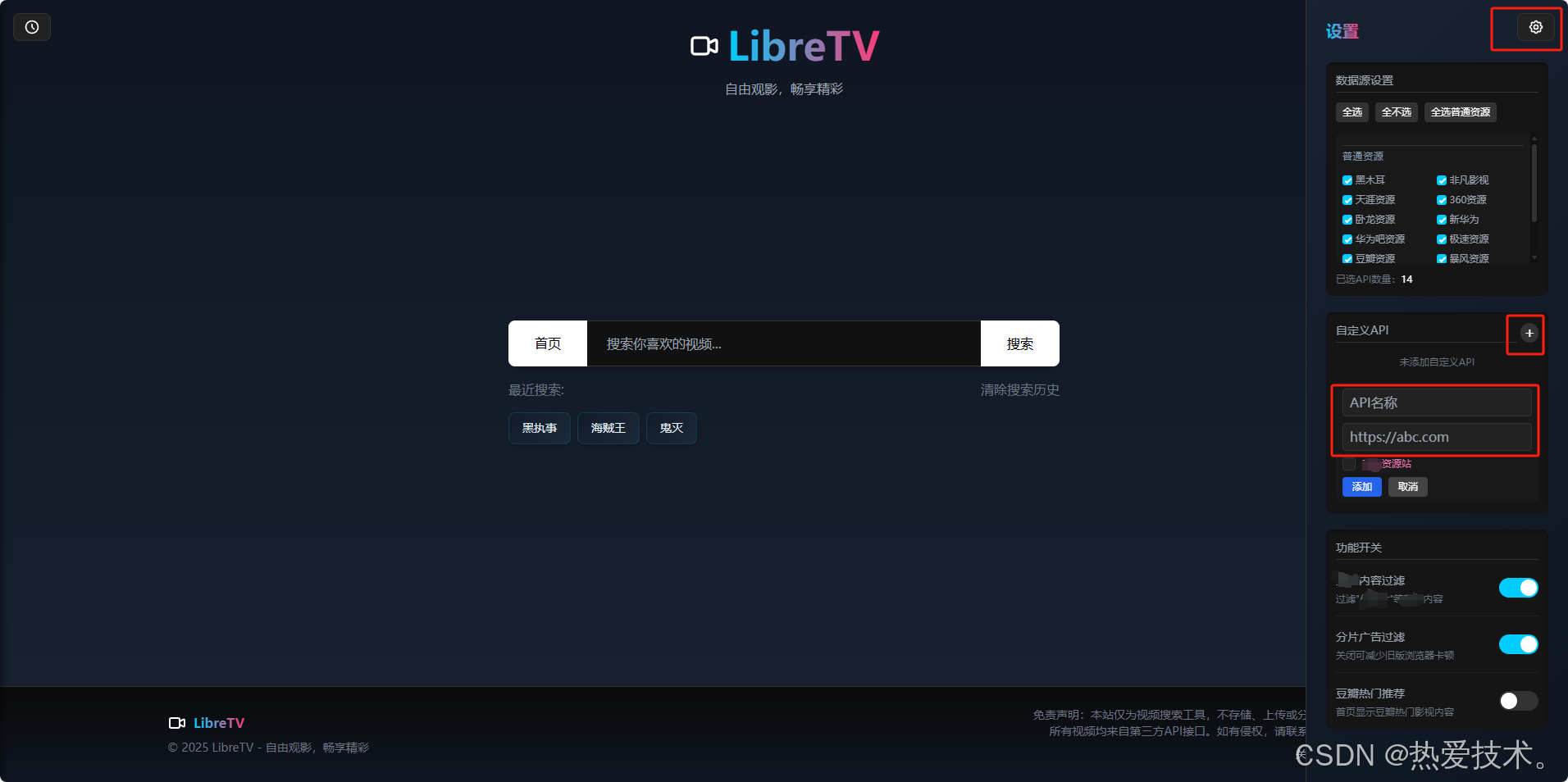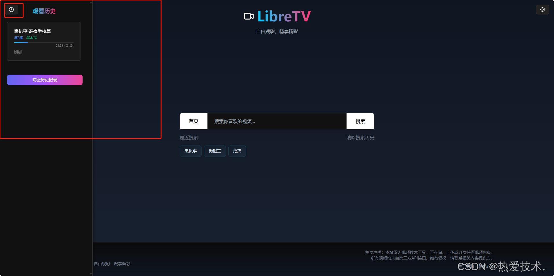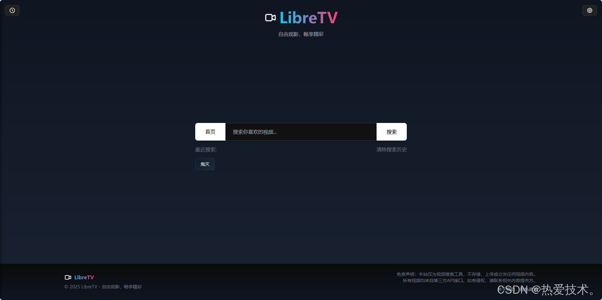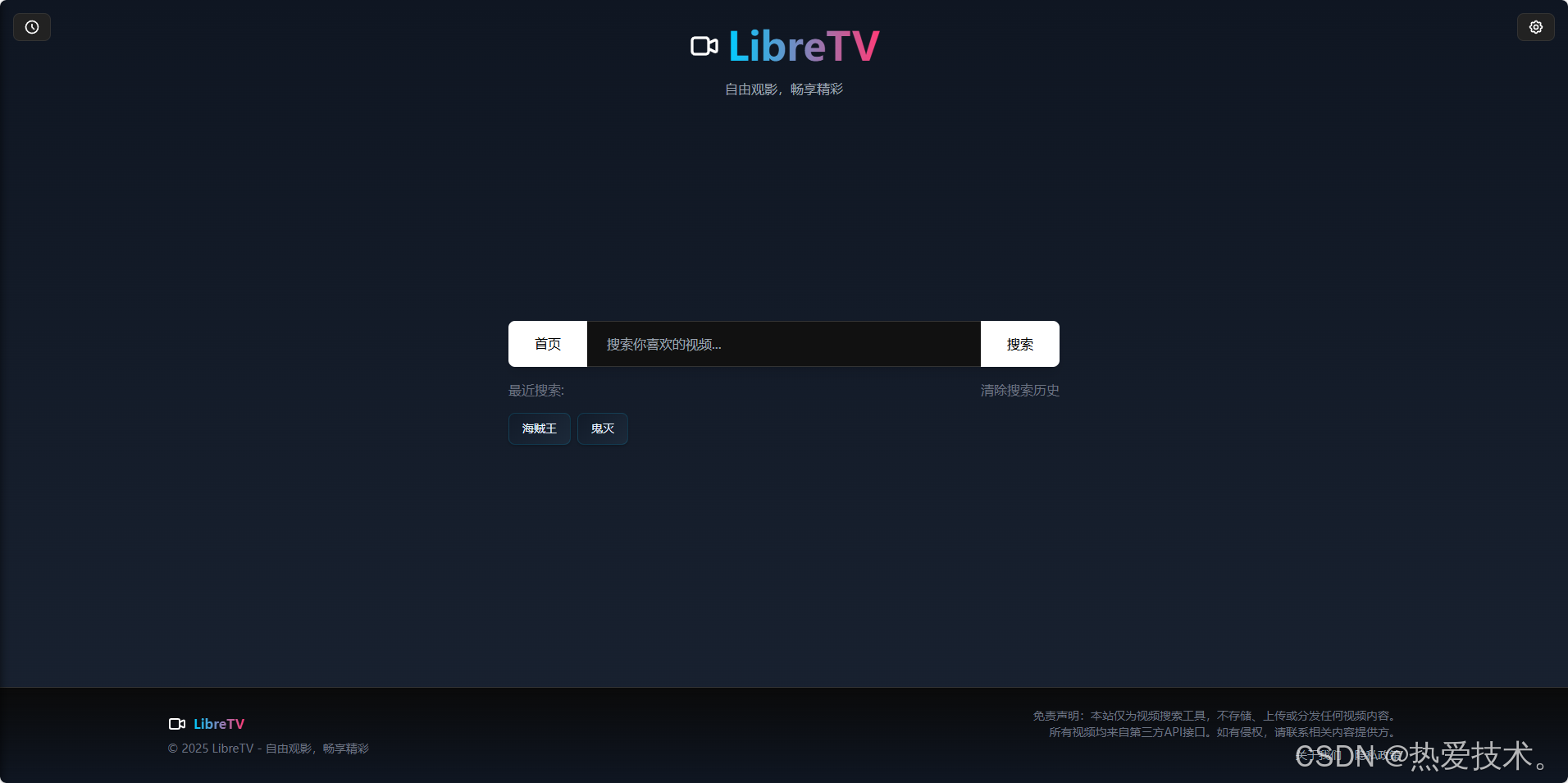 **LibreTV** 是一个基于纯前端技术构建的开源视频聚合平台。它就像一位贴心的管家,帮你从多个来源搜索和播放你感兴趣的影视内容,而且完全免费!无需注册,打开就能看,支持各种设备访问。