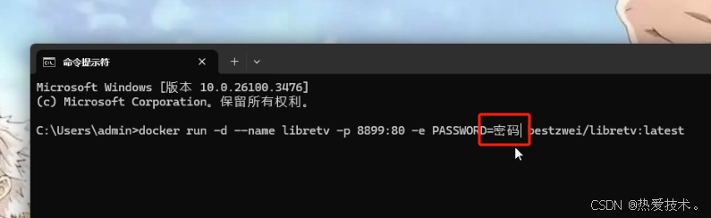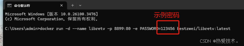 docker run -d --name libretv -p 8899:80 -e PASSWORD=密码 bestzwei/libretv:latest