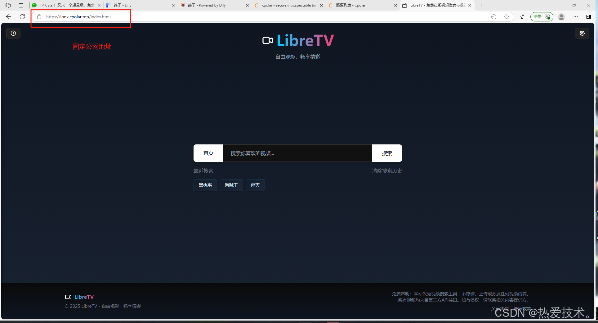 通过以上步骤,你不仅成功在Windows上部署了LibreTV,还利用cpolar实现了随时随地的远程访问。现在,无论你在世界的哪个角落,都能轻松享受自己的私人影院啦!