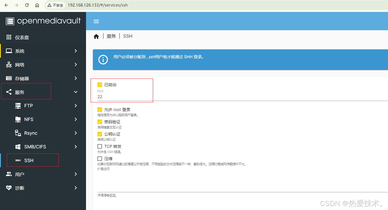 OpenMediaVault 是基于Debian Linux的系统,所以我们可以采用cpolar的Linux一键安装脚本即可实现快速安装,首先我们检查确认是否已经开启OpenMediaVault 中的ssh连接,然后通过ssh 连接到OpenMediaVault .