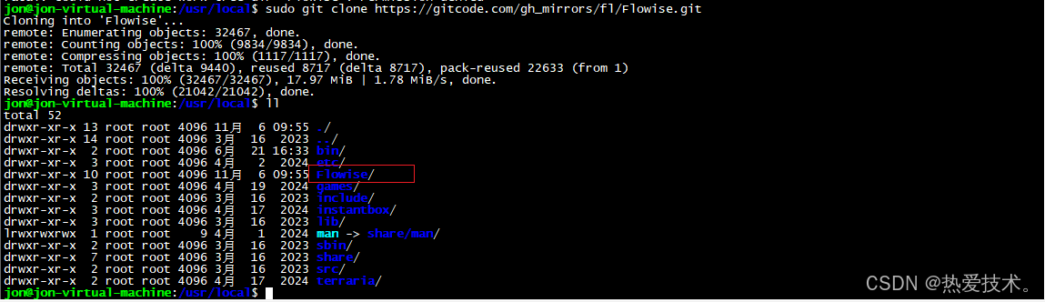 Flowise是一个开源项目,我们可以直接在github上获取,本例直接使用git 克隆项目到本地,执行下面命令进行克隆下载