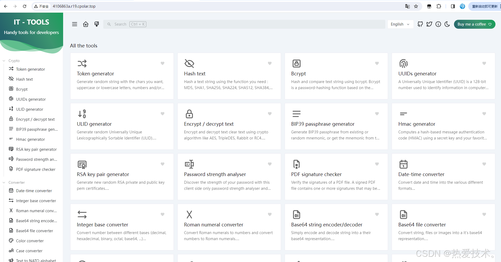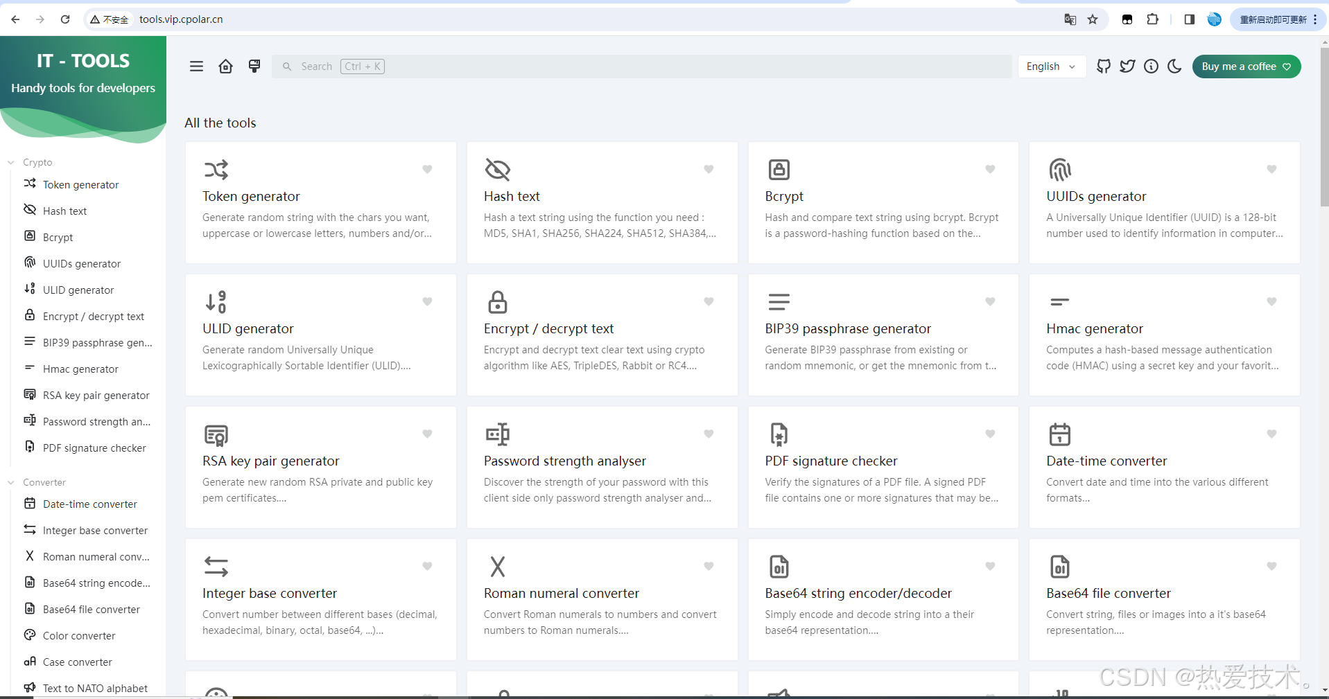 我们就成功在本地搭建了it-tools工具箱,但如果想实现出门在外,也能随时随地使用it-tools进行异地工作就需要借助cpolar内网穿透工具来实现公网访问了!接下来介绍一下如何安装cpolar内网穿透并实现it-tools工具箱的公网访问!