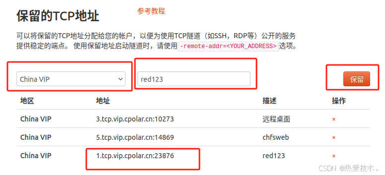3. cpolar博客:配置固定TCP端口地址: [https://www.cpolar.com/blog/configure-fixed-tcp-port-address](https://www.cpolar.com/blog/configure-fixed-tcp-port-address)