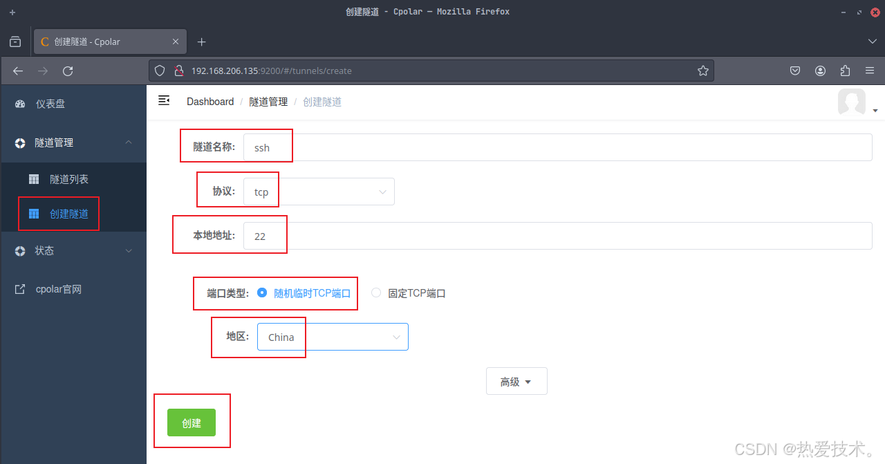 登录cpolar web UI管理界面后,点击左侧仪表盘的隧道管理——创建隧道: