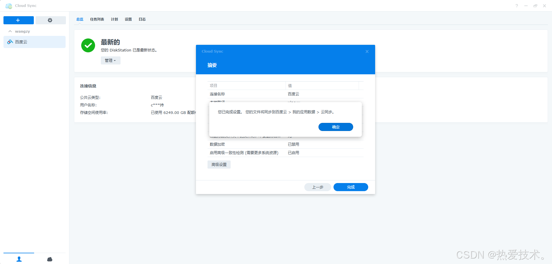 使用时感觉它很实用,能自动同步文件,不用手动上传下载,节省了时间。比如我把工作文档存在 NAS 里,通过 Cloud Sync 同步到百度云,在家用电脑就能从百度云下载查看,很方便。不过要注意设置合适的同步频率,避免频繁同步占用过多网络资源,另外要定期检查同步日志,确保文件都同步成功。