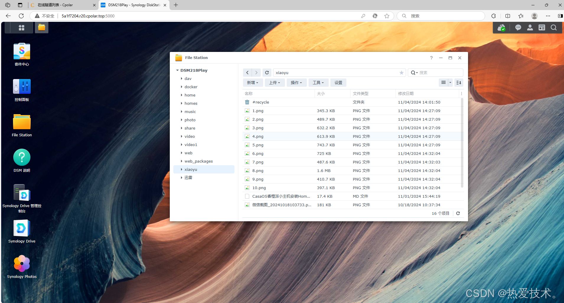 可以看到进入到了群晖的登录界面中,登录后,进入同步网盘的文件夹中,就实现了随时随地都可以访问群晖里的文件数据了。