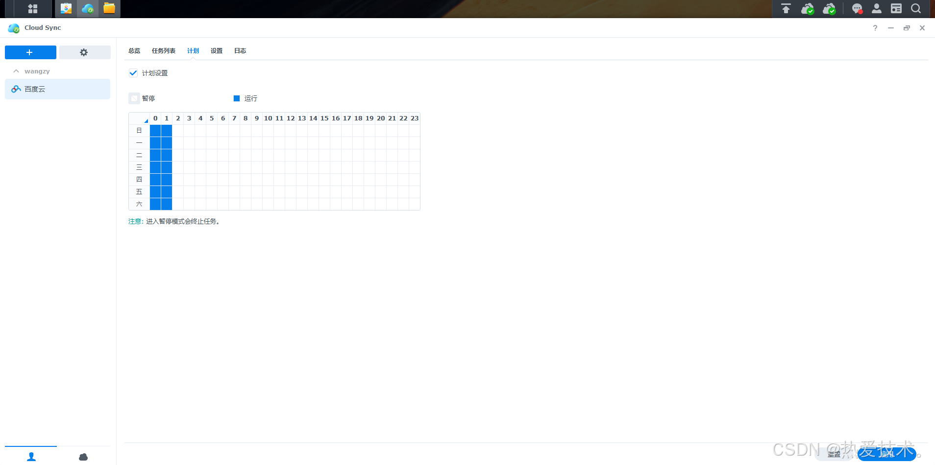 回到Cloud Sync中,在上方计划中可以设置同步时间,系统默认同步周期为60s,如果同步的频次不高,可以设置一个固定的时间同步,减少资源占用