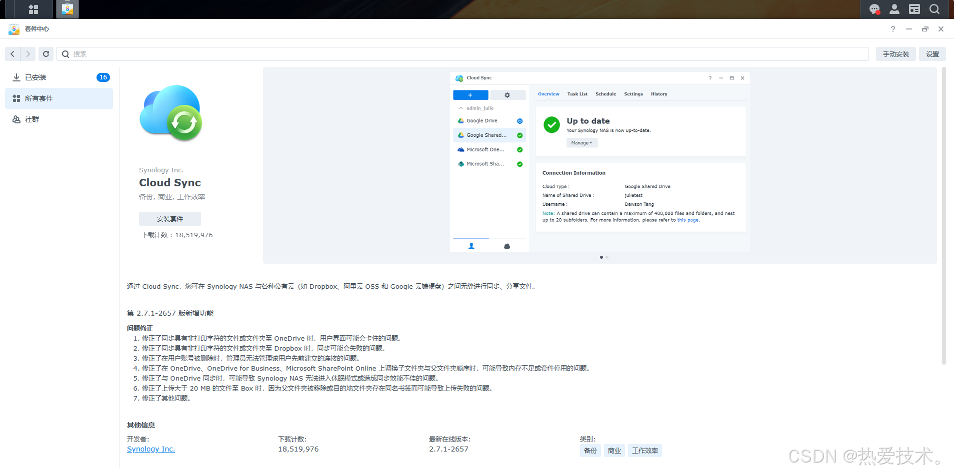1. 群晖NAS安装Cloud Sync