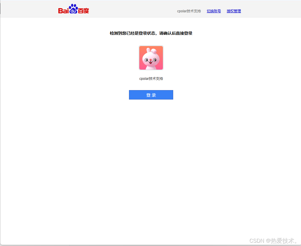 如果浏览器存有百度云的登录缓存,会直接弹出授权认证,如果没有请自行登录之后进行授权。