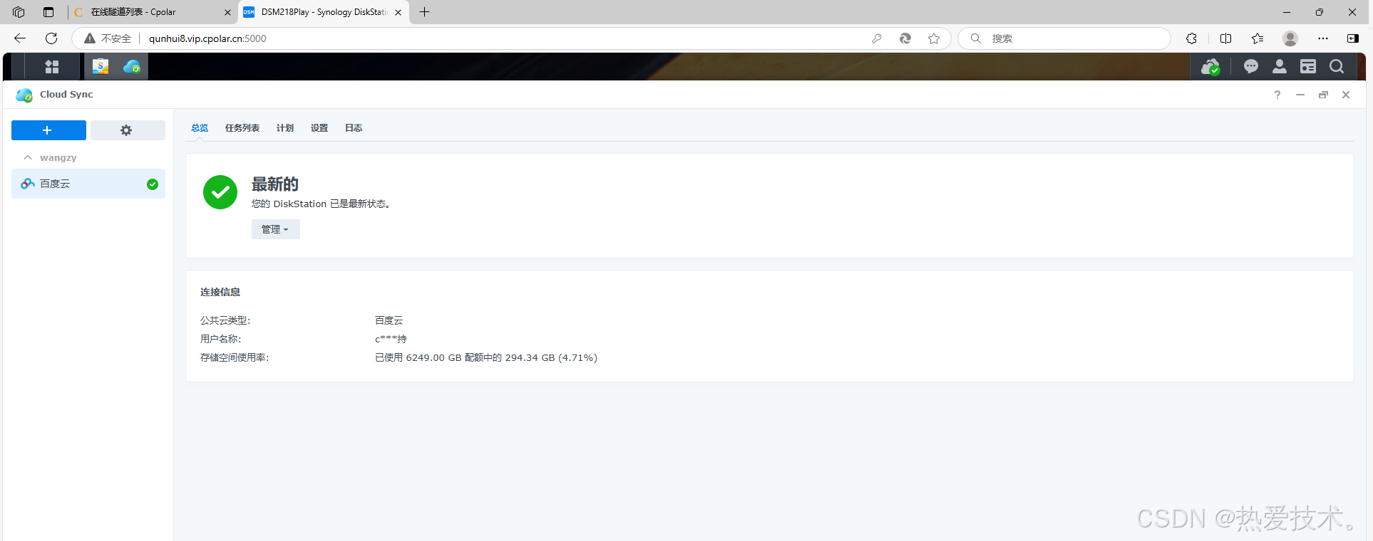 而搭配 cpolar 内网穿透后,就能突破局域网限制。通过公网地址,不管在哪都能远程访问群晖 NAS 上的 Cloud Sync,查看同步状态、处理同步问题,还能上传下载文件。比如出差时急需 NAS 里的一份重要文档,直接远程访问下载,不用麻烦同事帮忙,既高效又安全。