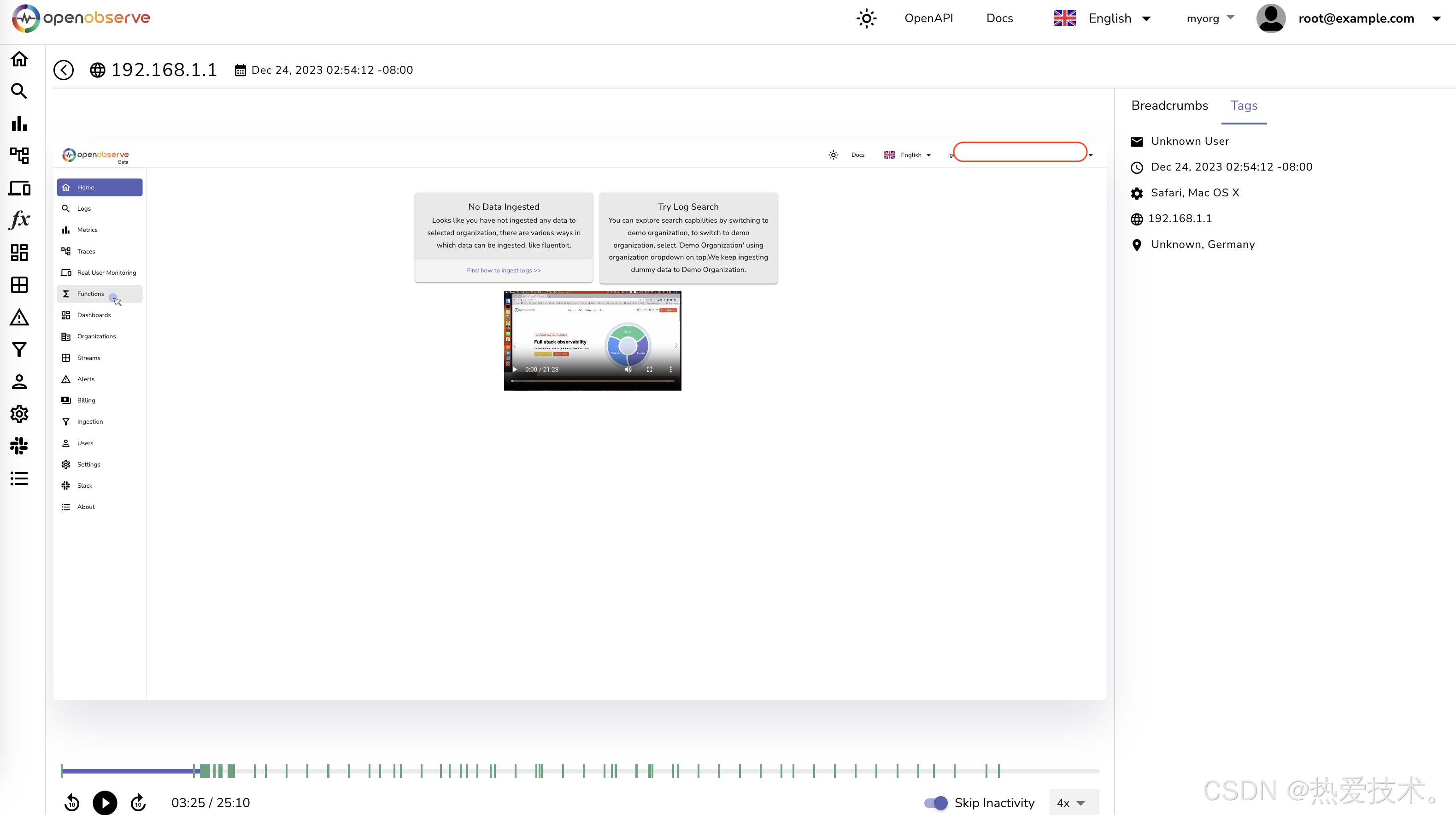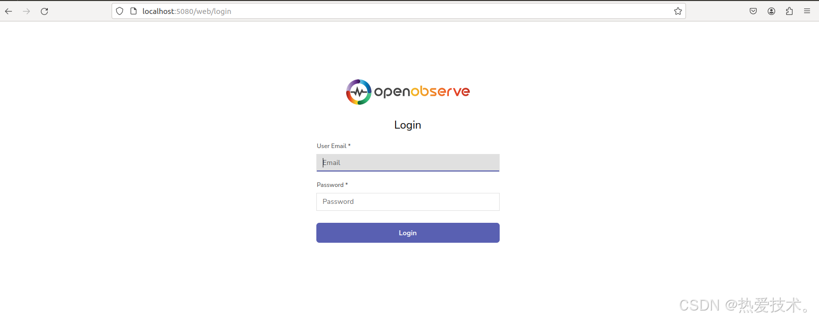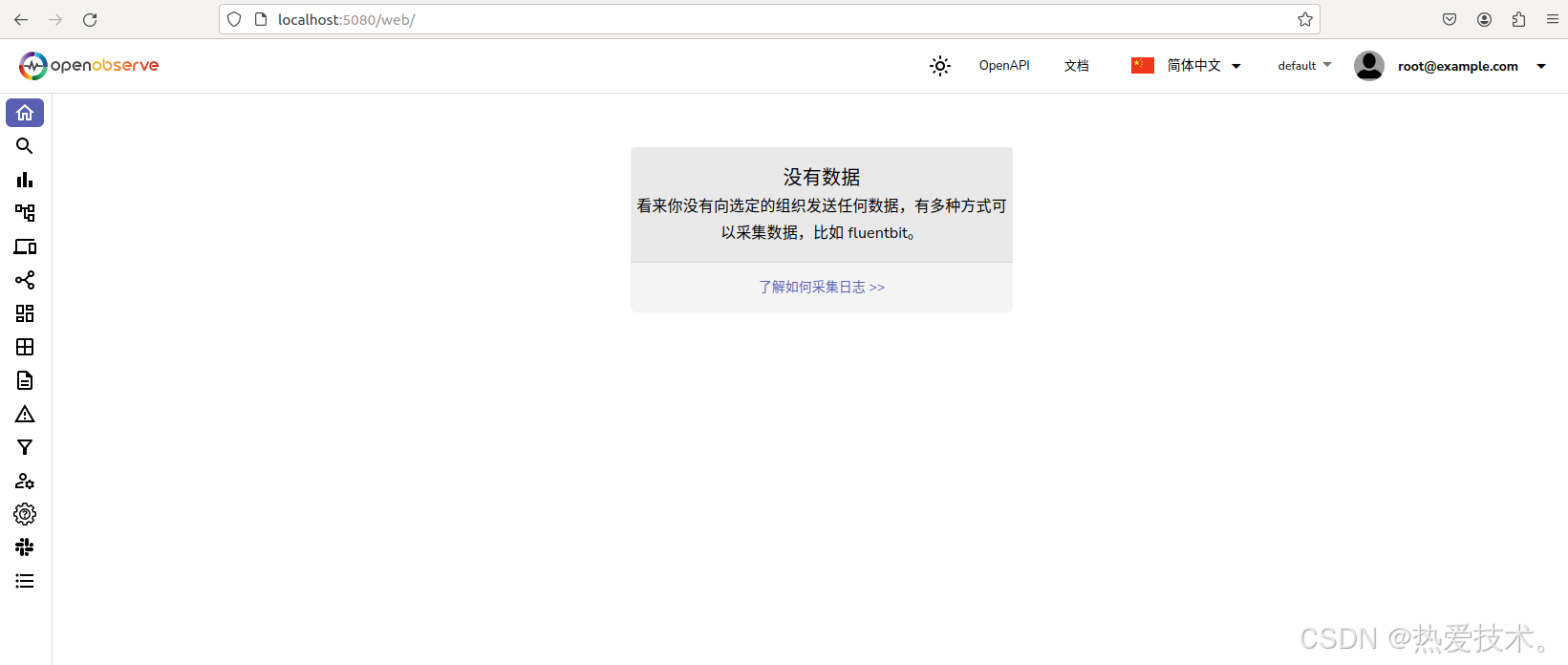 启动OpenObserve容器后,打开浏览器输入ubuntu主机IP加端口号5080即可访问其Web UI 界面。