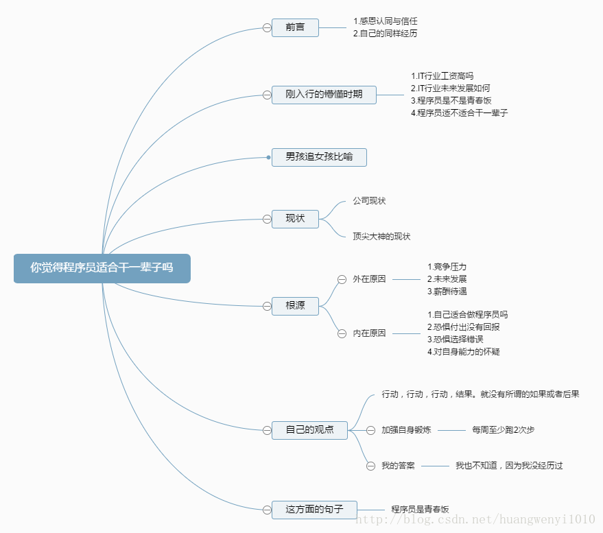 其实我也不知道程序员是不是适合每个人干一辈子,毕竟自己也不是历经沧桑的码农,未经历整个过程,没有资格回答这种问题。有时候明明想要干一辈子,可种种原因只做了一阵子;有时候想要做一阵子,可是做着做着就发现蛮有趣,很适合自己,于是干了一辈子;有时候想要干一辈子,经过自己的学习,努力,坚持,就真成一辈子;有时候仅仅想要试着做一阵子,可最后发现,如自己所愿,真的只是做了一阵子。努力坚持,照顾好身体,就会一辈子;熬夜加班,挥霍身体,眼睛一闭不睁,就是一阵子;