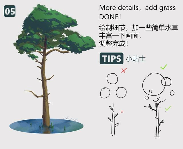 那么今天奇天CG学院就在网络上收集整理了一些关于如何绘画树木的教程给大家,来自微博插画师画CG的chc的绘画技巧教程非常简单,赶紧来看看叭: