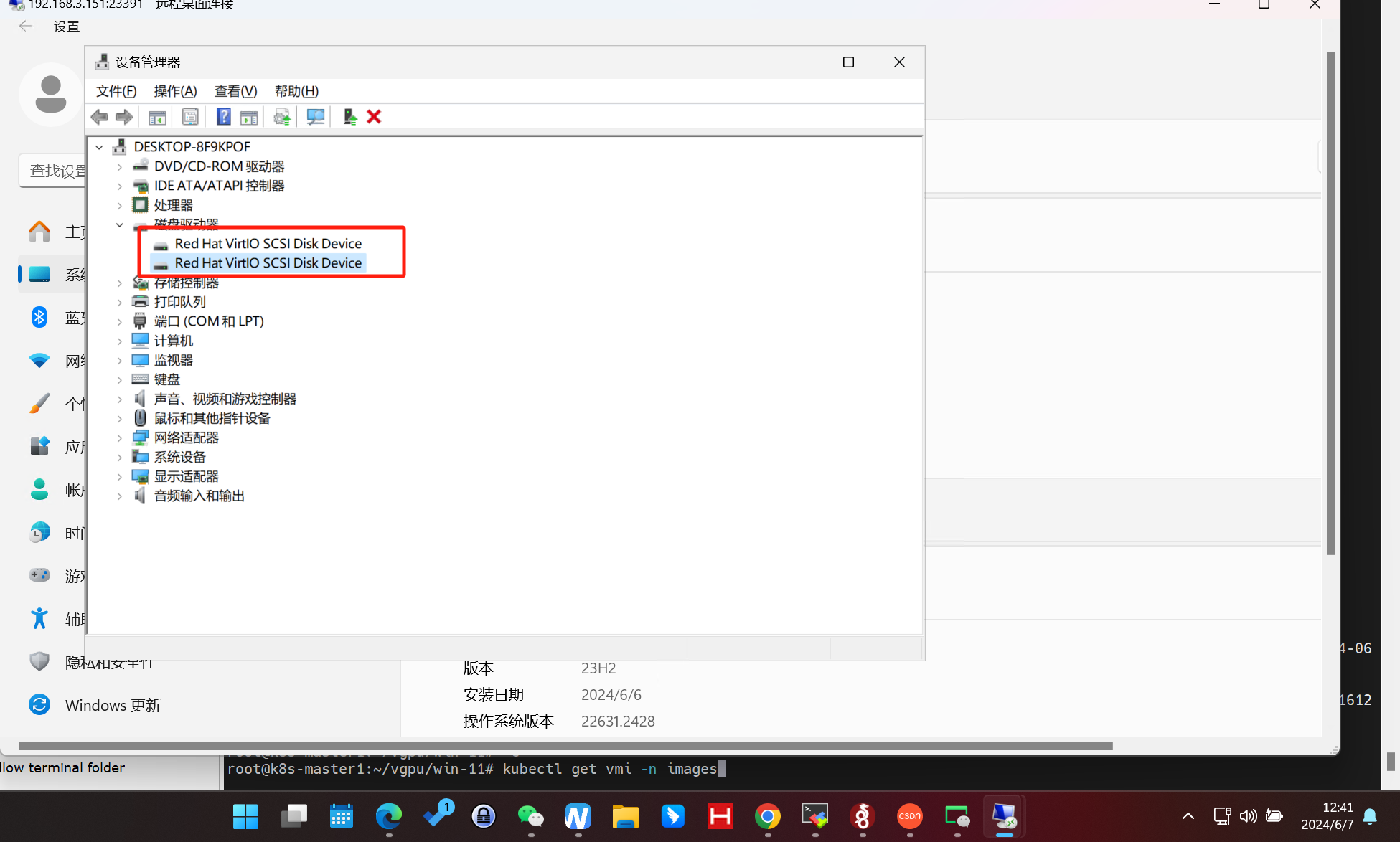 win11-virtio Bound pvc-89bc62c2-7f82-4d49-8fad-67b31f817fb8 10Gi RWO ceph-csi 21m