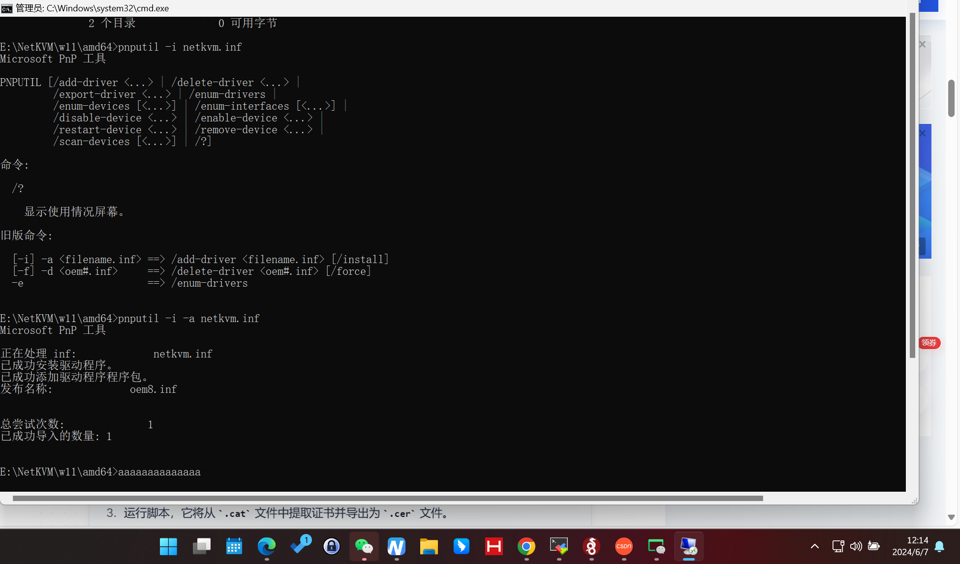 vm中进入e盘 netkvm目录下安装netkvm包(可选)