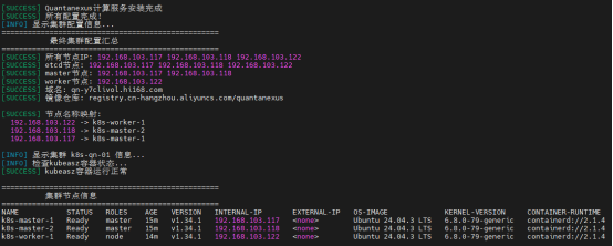 本测试方案适用于在普通 Kubernetes 环境中部署 Quantanexus。推荐使用 kubeasz 安装 Kubernetes 集群,如果已有 Kubernetes 环境,建议版本为 1.28 以上。