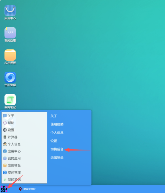 登录后点击左下角图标,选择【切换后台】,进入到后台: