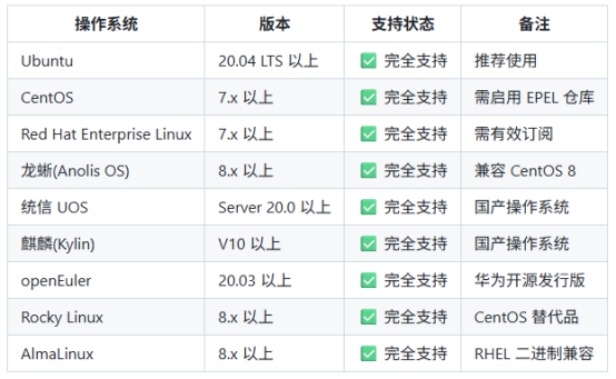 Quantanexus 完全支持国内主流的 Linux 发行版,下表列出了经过验证的操作系统版本: