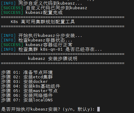 (5)开始kubeasz分布安装,输入y默认开始安装步骤1至步骤 7(需要一点时间)
