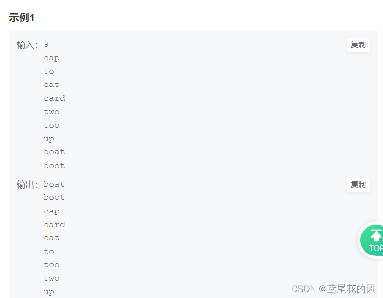 数据范围:1≤n≤1000 ,字符串长度满足 1≤len≤100