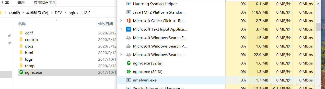 先下载nginx的压缩包,解压之后双击nginx.exe即可启动,然后通过任务管理器查看nginx是否在运行(或者看有没有错误日志),关闭nginx的方法是通过任务管理器直接结束两个nginx进程。