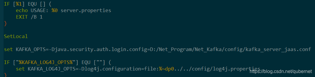 在Kafka安装目录bin\windows中,打开kafka-server-start.bat进行编辑,在该文件中SetLocal关键字下一行加入如下配置: