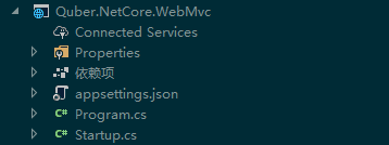 接下来新建wwwroot、Controllers、Models和Views文件夹,wwwroot主要用于存放js、css或插件等这类文件;Controllers主要用于存放MVC的控制器文件;Models主要用于存放实体类文件(此处为了演示,正式环境最好是将所有的实体文件单独创建到一个类库中);Views主要用于存放控制器生成的视图文件。