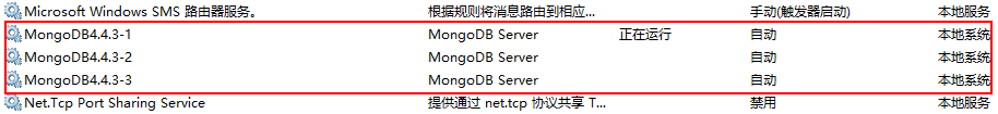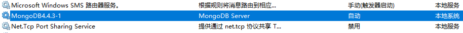 此时我们在Windows服务列表中就可以看到多了一个名叫“MongoDB4.4.3-1”的服务了:mongod -f "D:\Net_Program\Net_MongoDB\DB1\config.cfg" --serviceName "MongoDB4.4.3-1" --serviceDisplayName "MongoDB4.4.3-1" --install