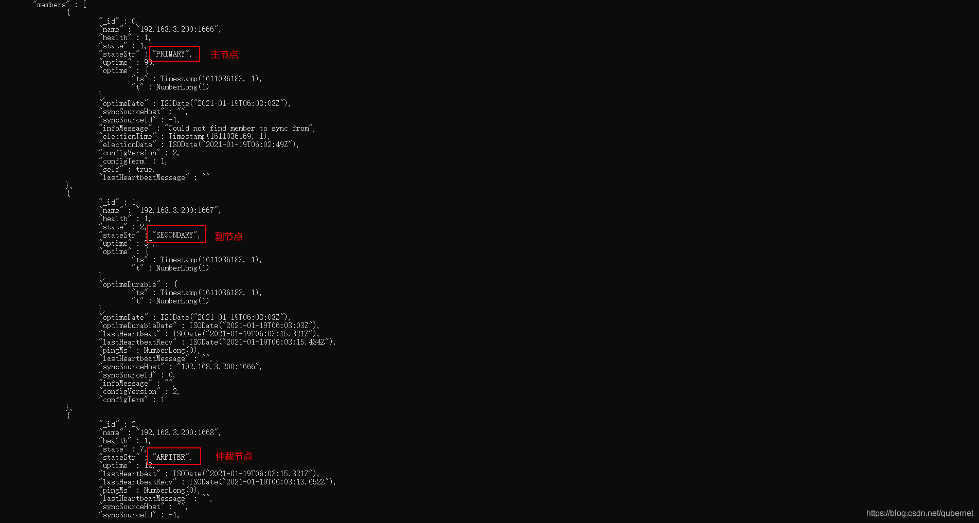 6.3、然后输入如下命令添加仲裁:rs.addArb("192.168.2.200:1668")
