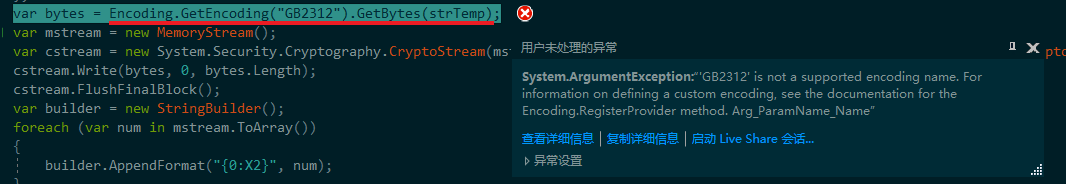 System.ArgumentException:“'GB2312' is not a supported encoding name. For information on defining a custom encoding, see the documentation for the Encoding.RegisterProvider method. Arg_ParamName_Name”