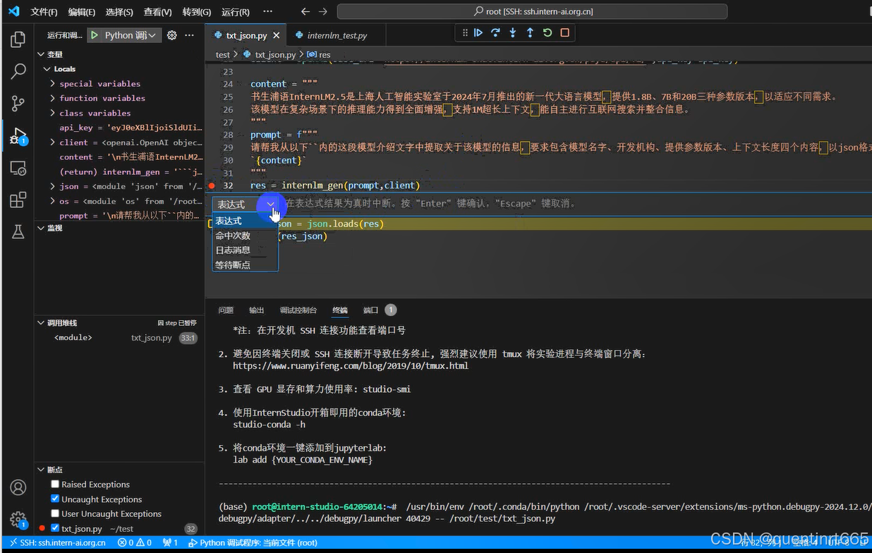前一期介绍了 InternStudio 与 VSCode 配合完成SSH连接与端口映射并运行 hello_world.py写文章-优快云创作中心