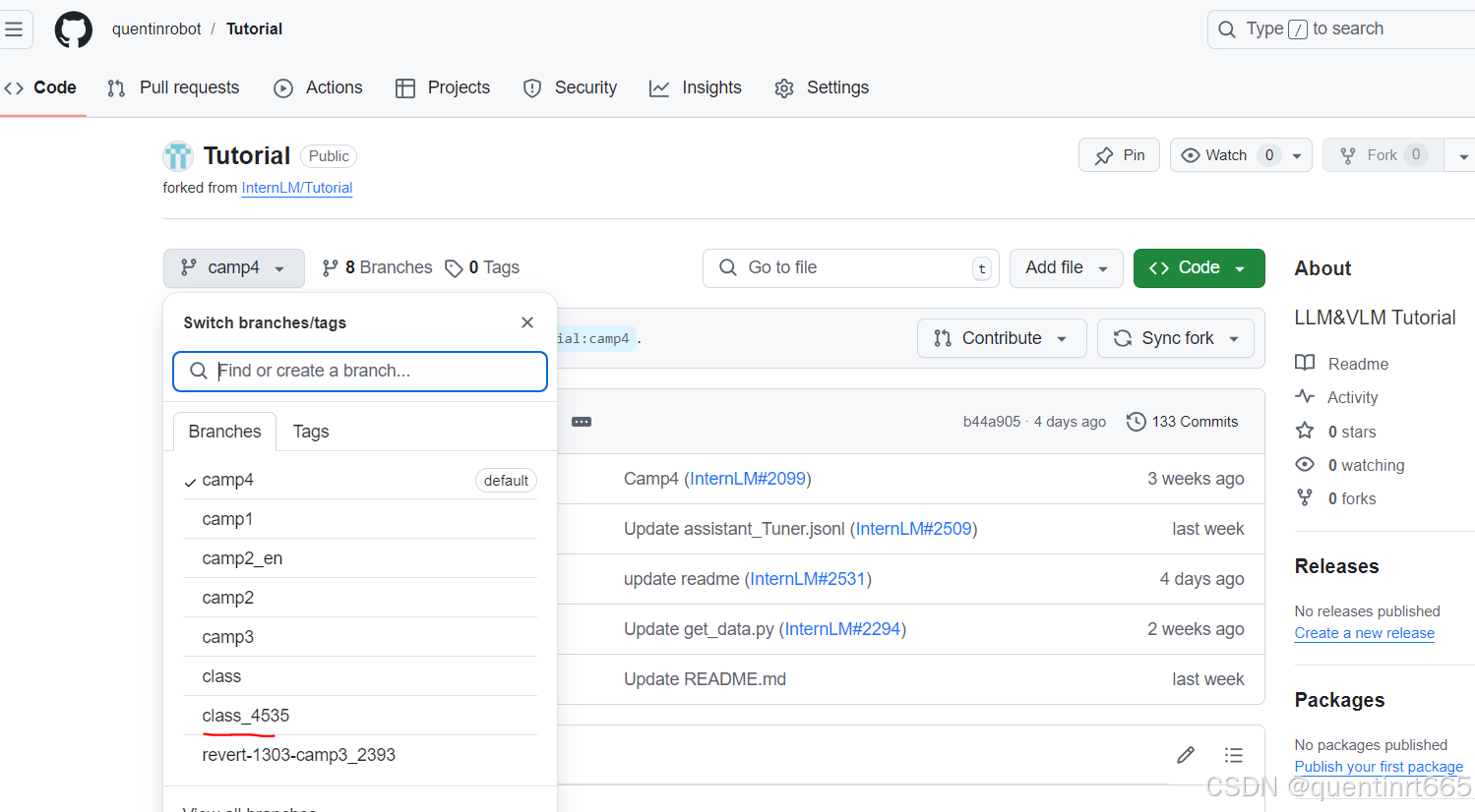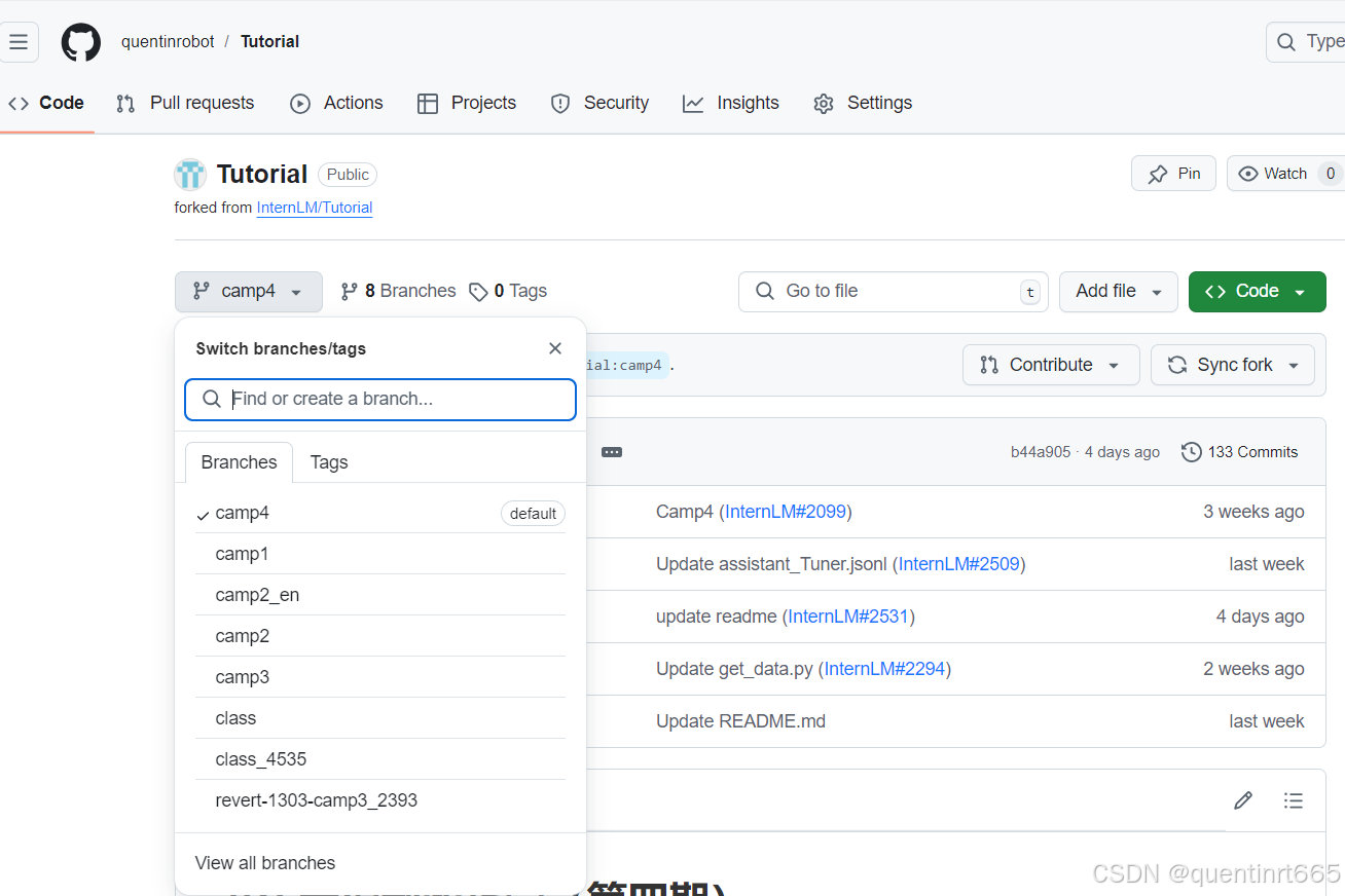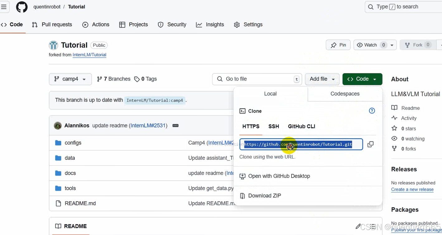 2.本次使用的学习项目的链接:https://github.com/InternLM/Tutorial/tree/camp4