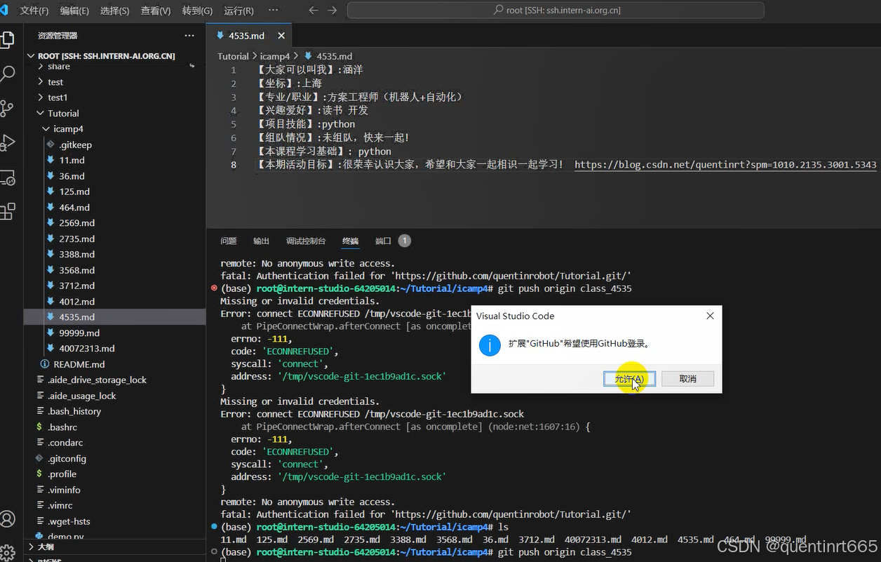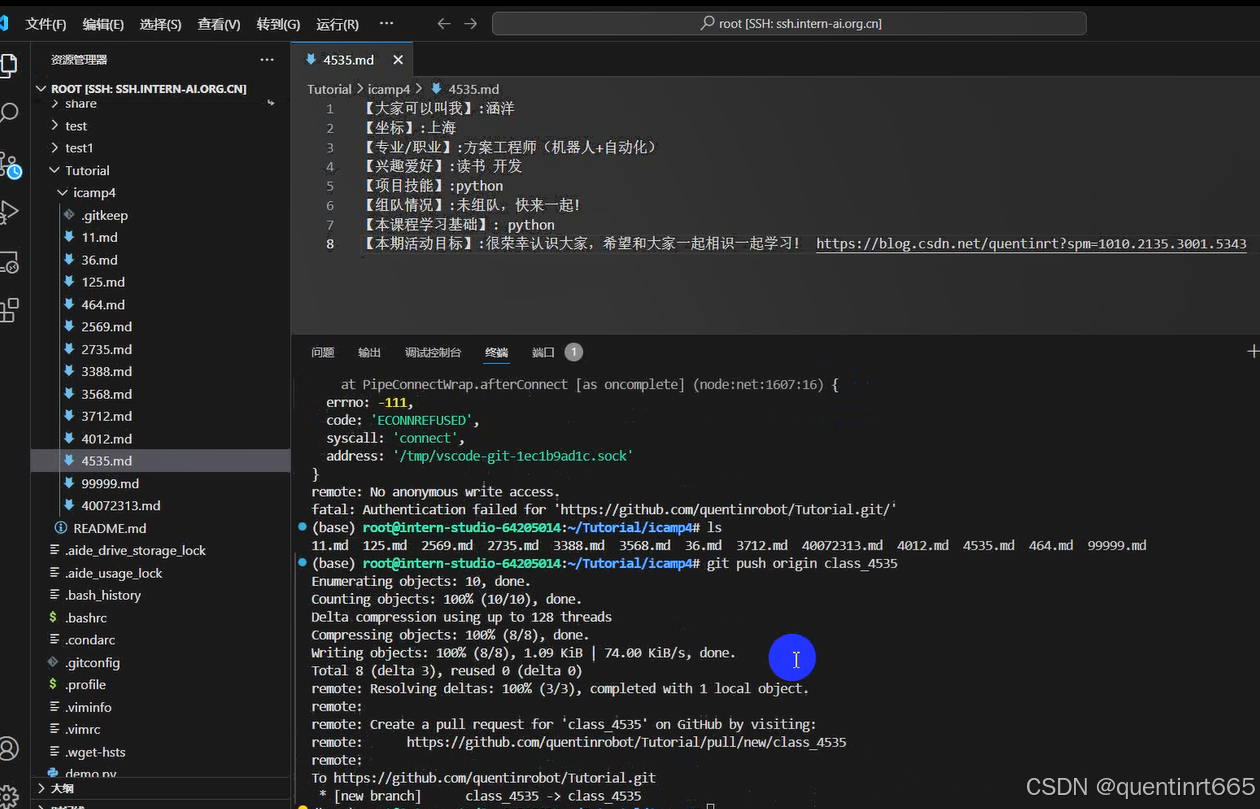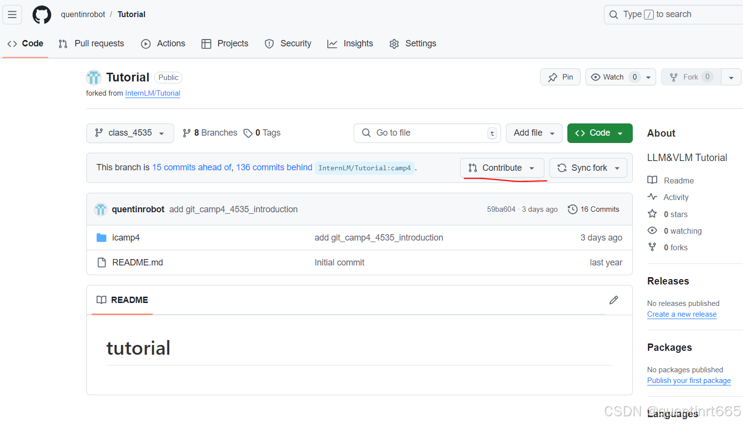 2.本次使用的学习项目的链接:https://github.com/InternLM/Tutorial/tree/camp4