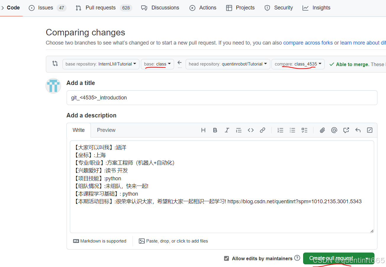 https://blog.youkuaiyun.com/quentinrt/article/details/143665949?spm=1001.2014.3001.5501本期介绍 在 GitHub 上创建一个 Pull Request&创建并提交一个项目
