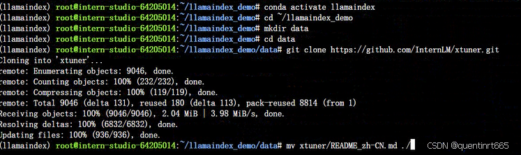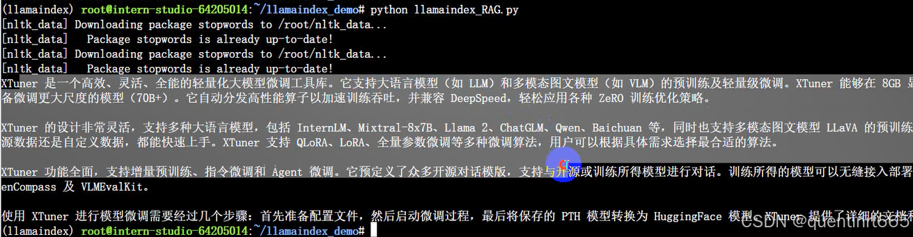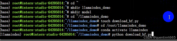 然后,在 /root/llamaindex_demo 目录下执行该脚本即可自动开始下载:
