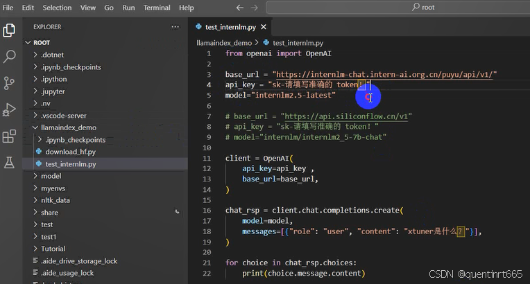密钥的内容就是你调用的模型申请的,书生模型或者硅基流动.我这里用的是硅基流动.