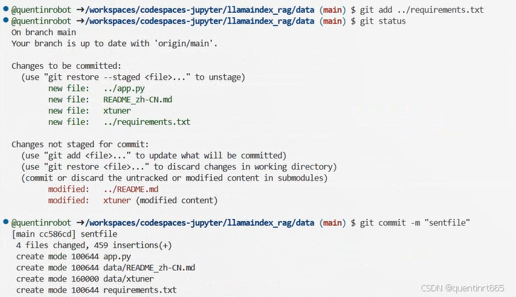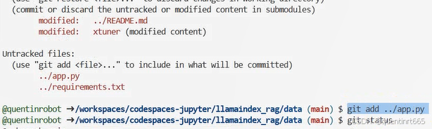 如出现文件没有被跟踪,比如app.py,equirements.txt文件,则手动添加