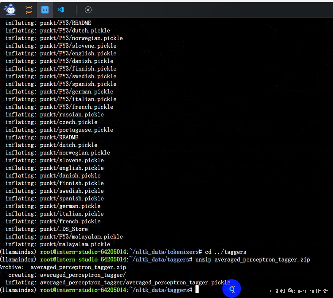 我们在使用开源词向量模型构建开源词向量的时候,需要用到第三方库 nltk 的一些资源。正常情况下,其会自动从互联网上下载,但可能由于网络原因会导致下载中断,此处我们可以从国内仓库镜像地址下载相关资源,保存到服务器上。 我们用以下命令下载 nltk 资源并解压到服务器上: