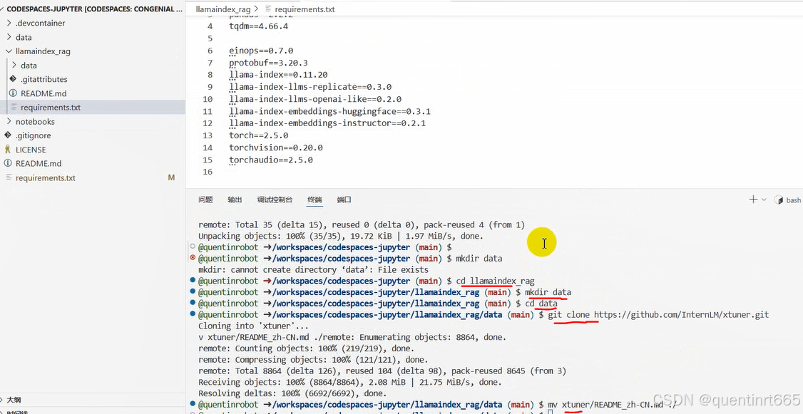 进入llamaindex_rag文件夹,新建data文件夹,执行下列命令,获取知识库