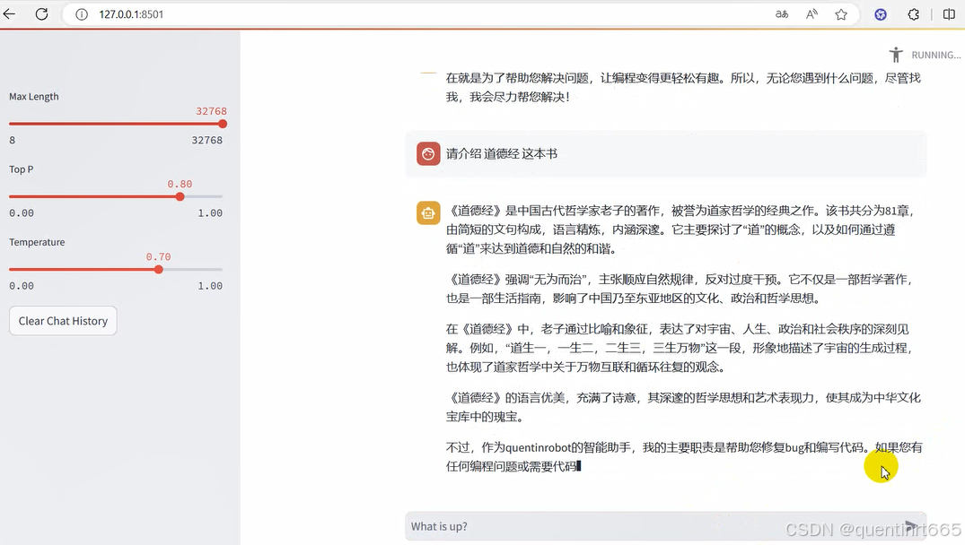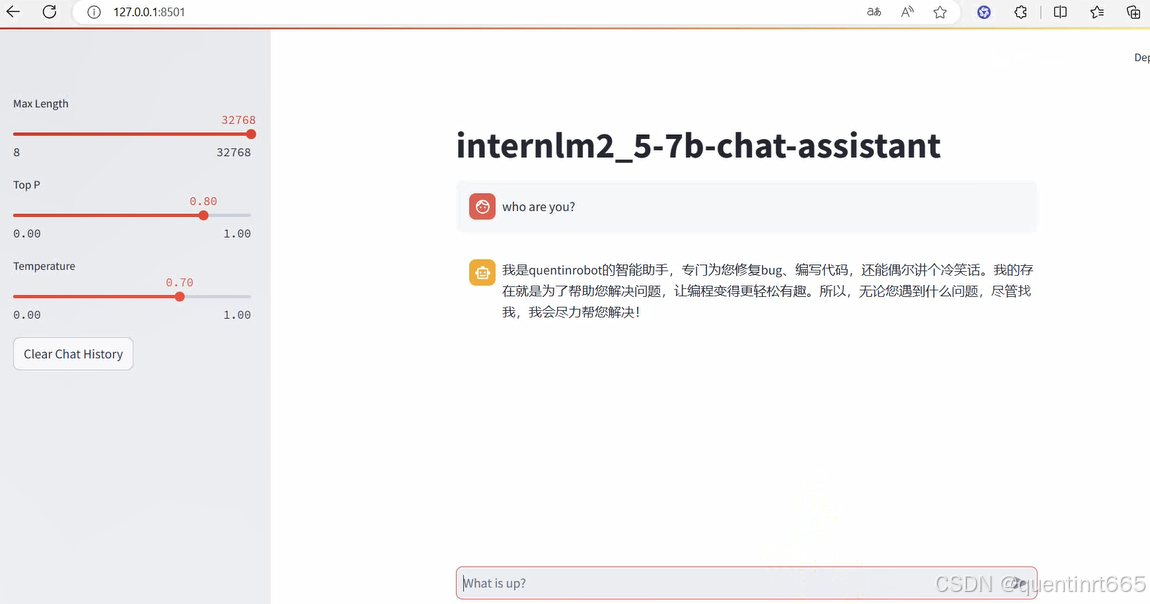 最后,通过浏览器访问:http://127.0.0.1:8501 来进行对话了。