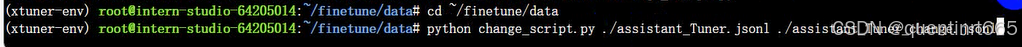 assistant_Tuner_change.jsonl 是修改后符合 XTuner 格式的训练数据。